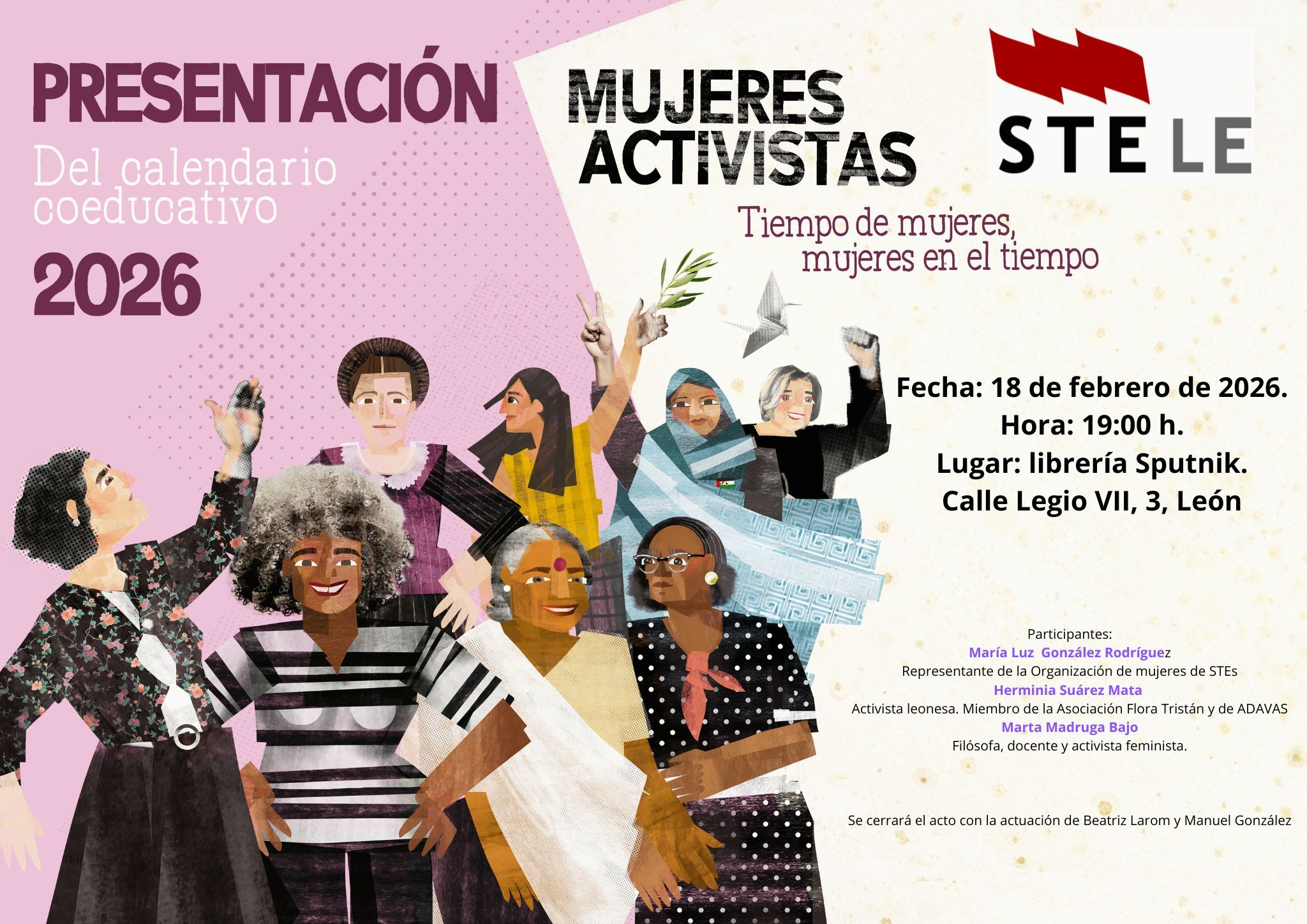 Presentación 2026 La Organización de Mujeres (STECyL-i) ha presentado en Valladolid el calendario "Tiempo de Mujeres, Mujeres en el Tiempo 2026", dedicado a Mujeres Activistas. Compromiso con la visibilización de las mujeres que hacen...