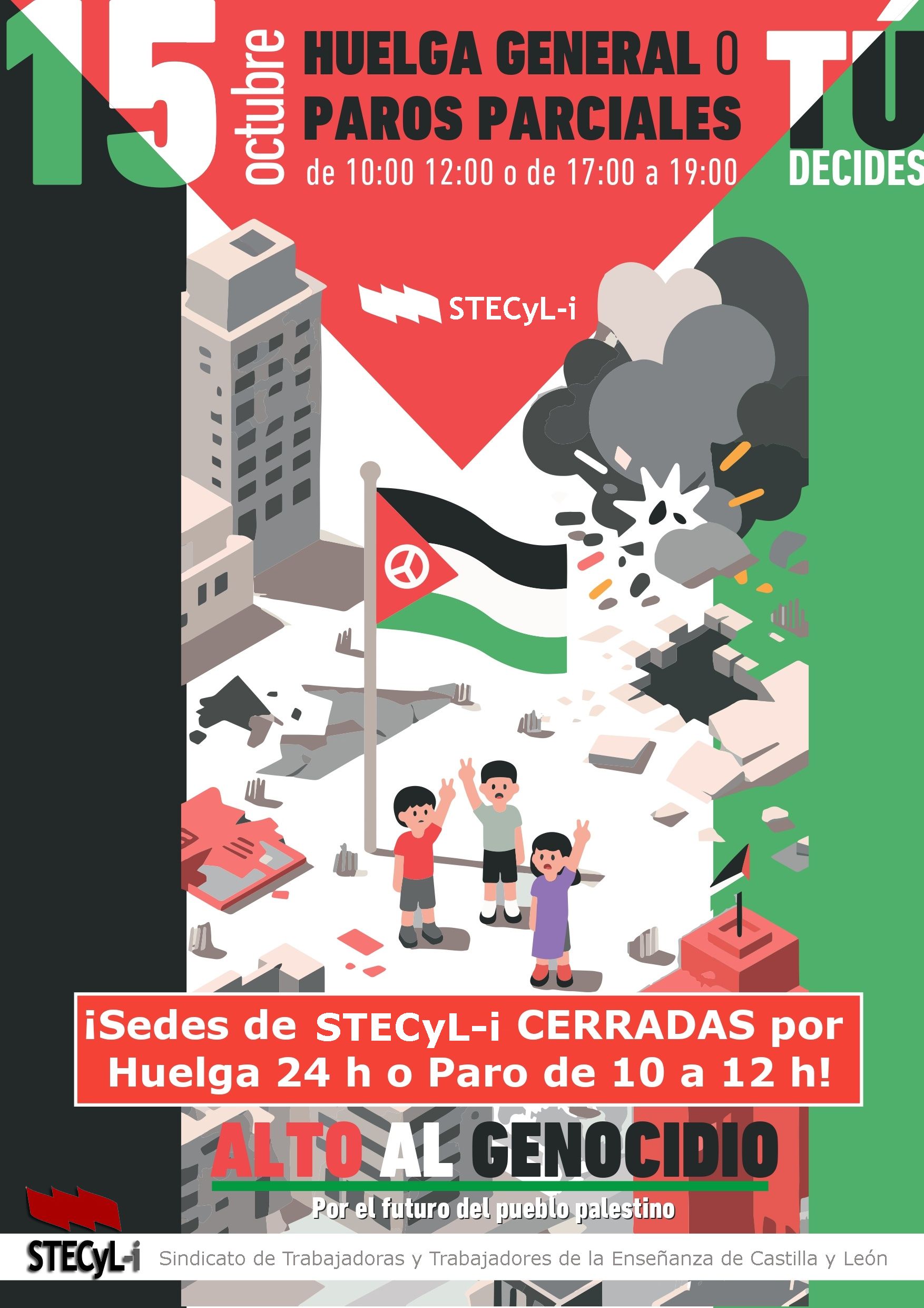 15 DE OCTUBRE: PAROS DE DOS HORAS Y HUELGA DE 24 HORAS CONTRA EL GENOCIDIO EN GAZA