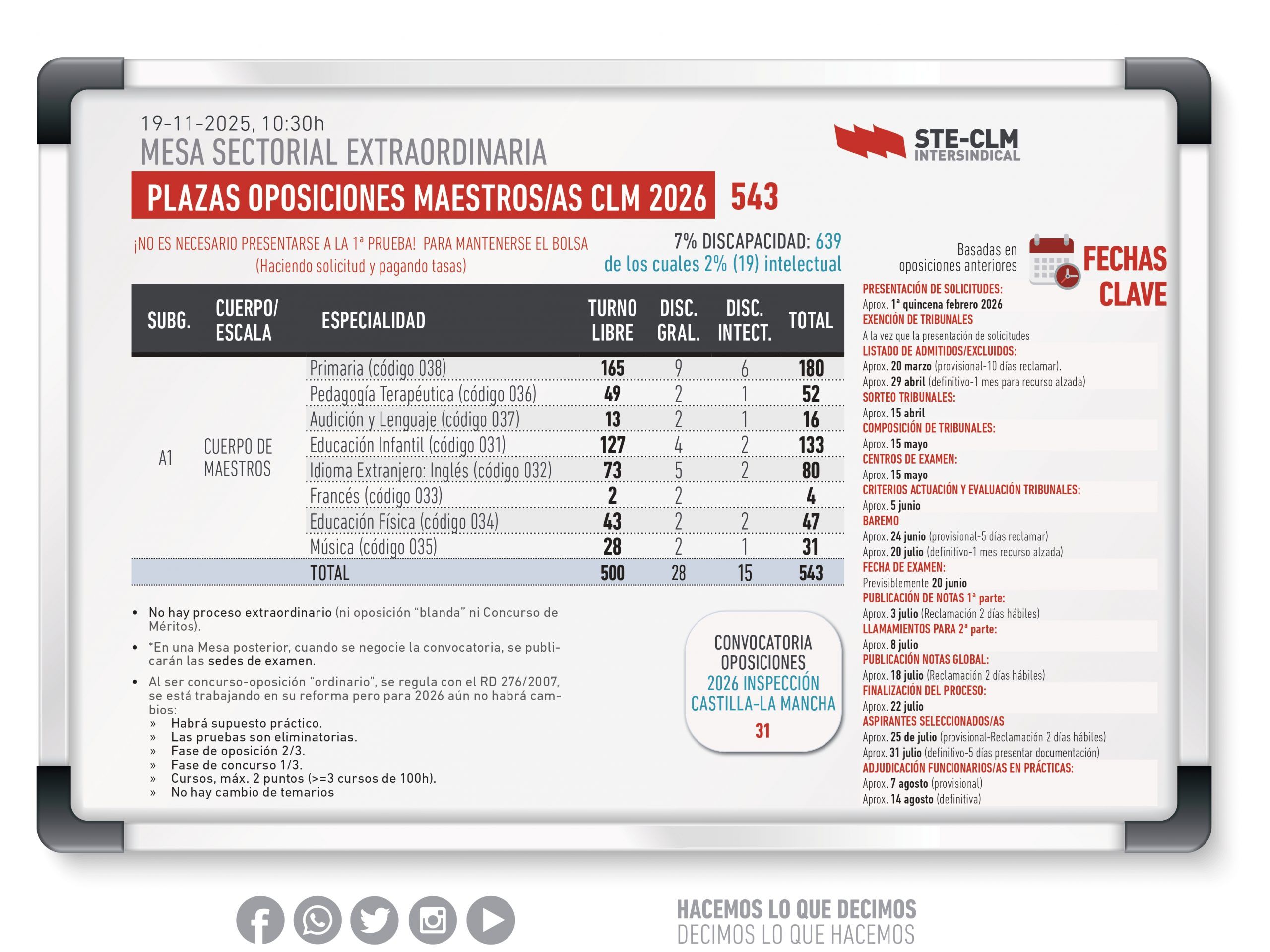 La Consejería presenta la Oferta de Empleo Público Docente para 2026 y 818 plazas para las oposiciones de Secundaria y Otros Cuerpos