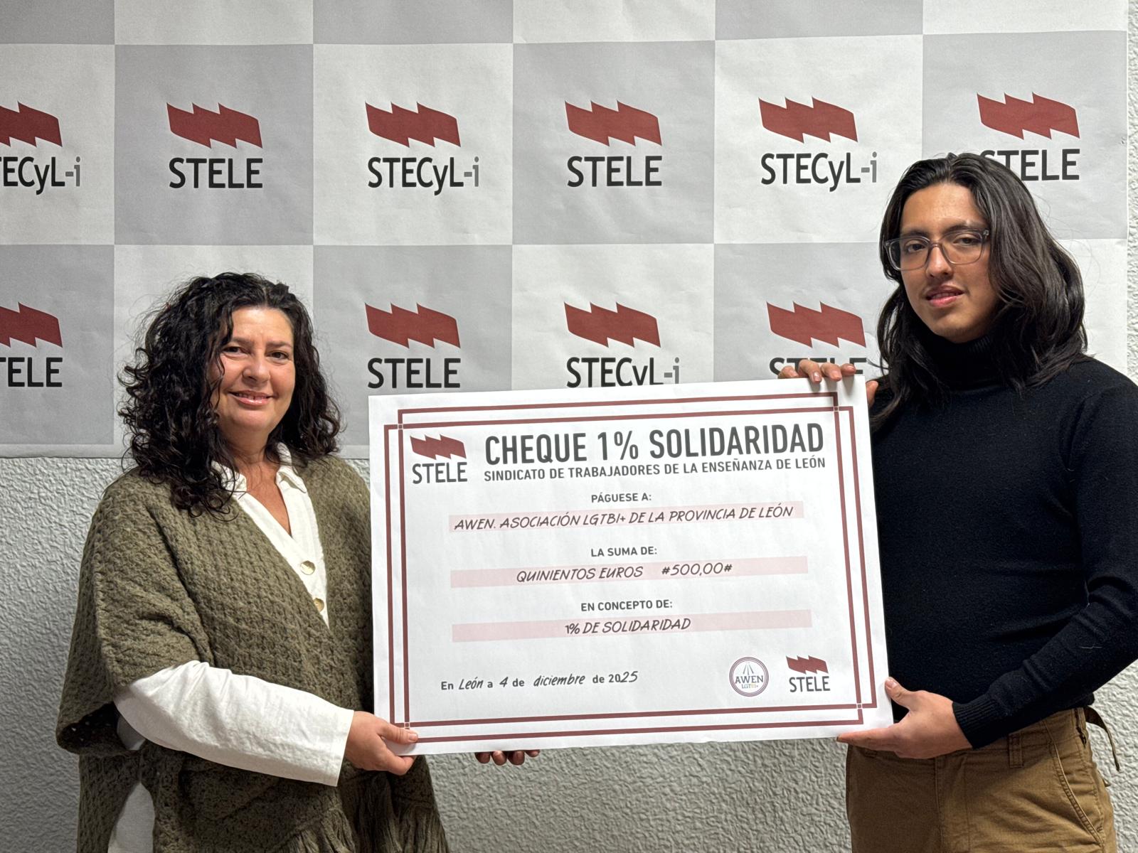 El sindicato STELE/STECyL-i dona su “1% de solidaridad” a la asociación AWEN LGTBI+ para contribuir a la defensa de las infancias y adolescencias del colectivo. En prensa: Donación sindical a Awen León en favor...