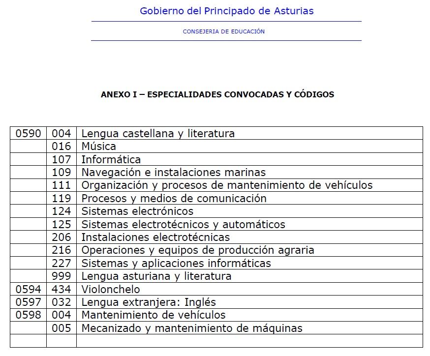 Asturias | Bolsa de trabajo Interinidades 4 Cuerpos docentes y 16 especialidades