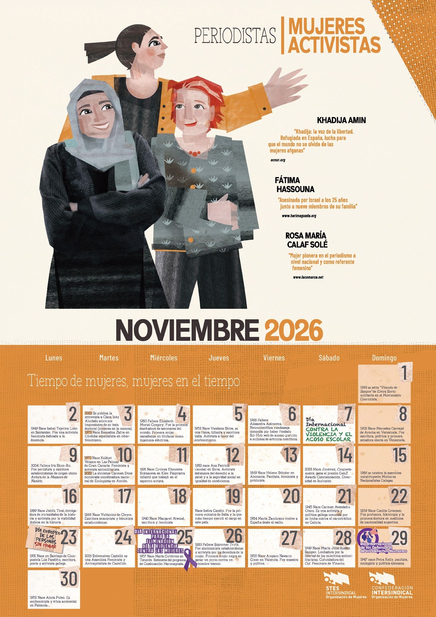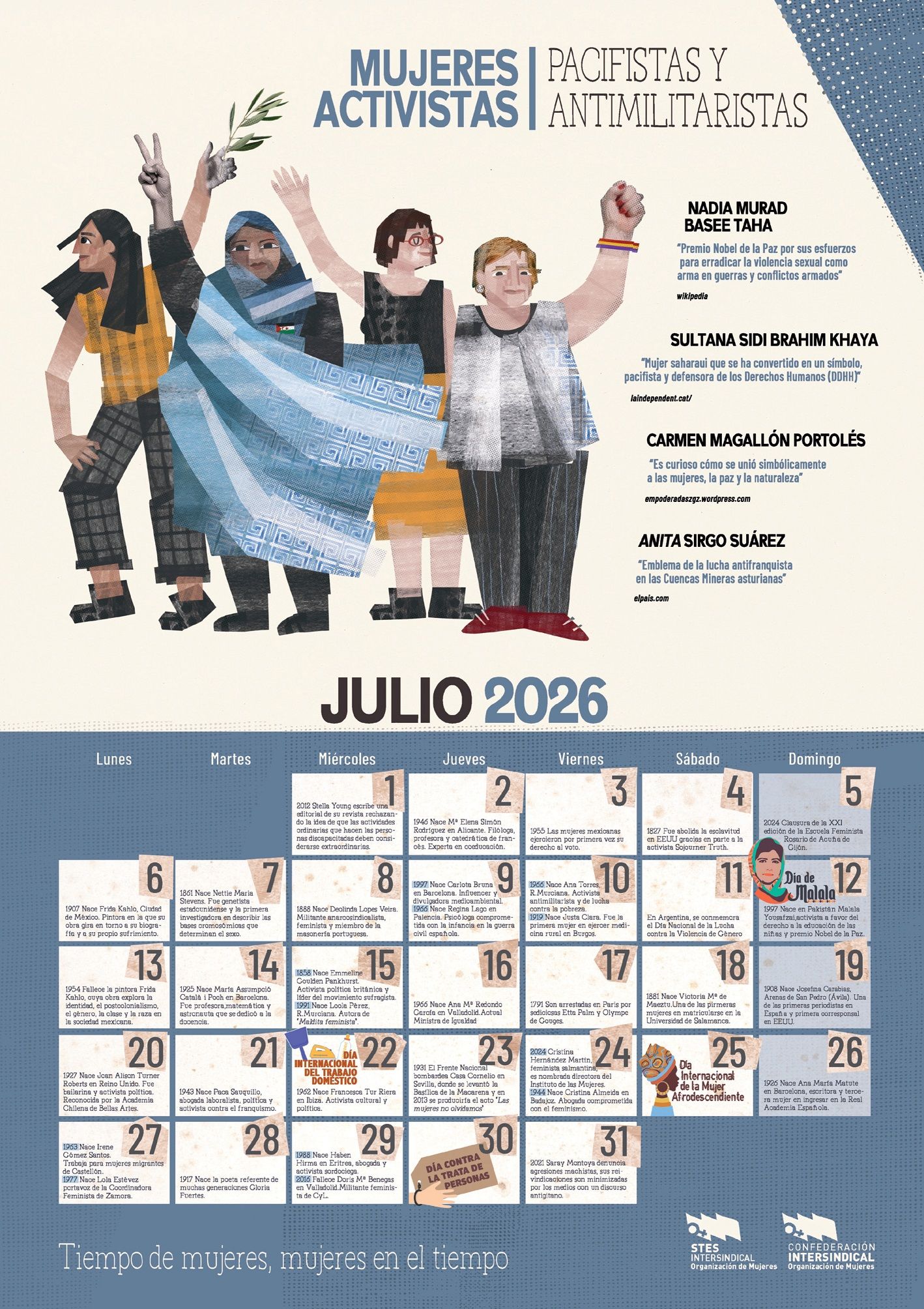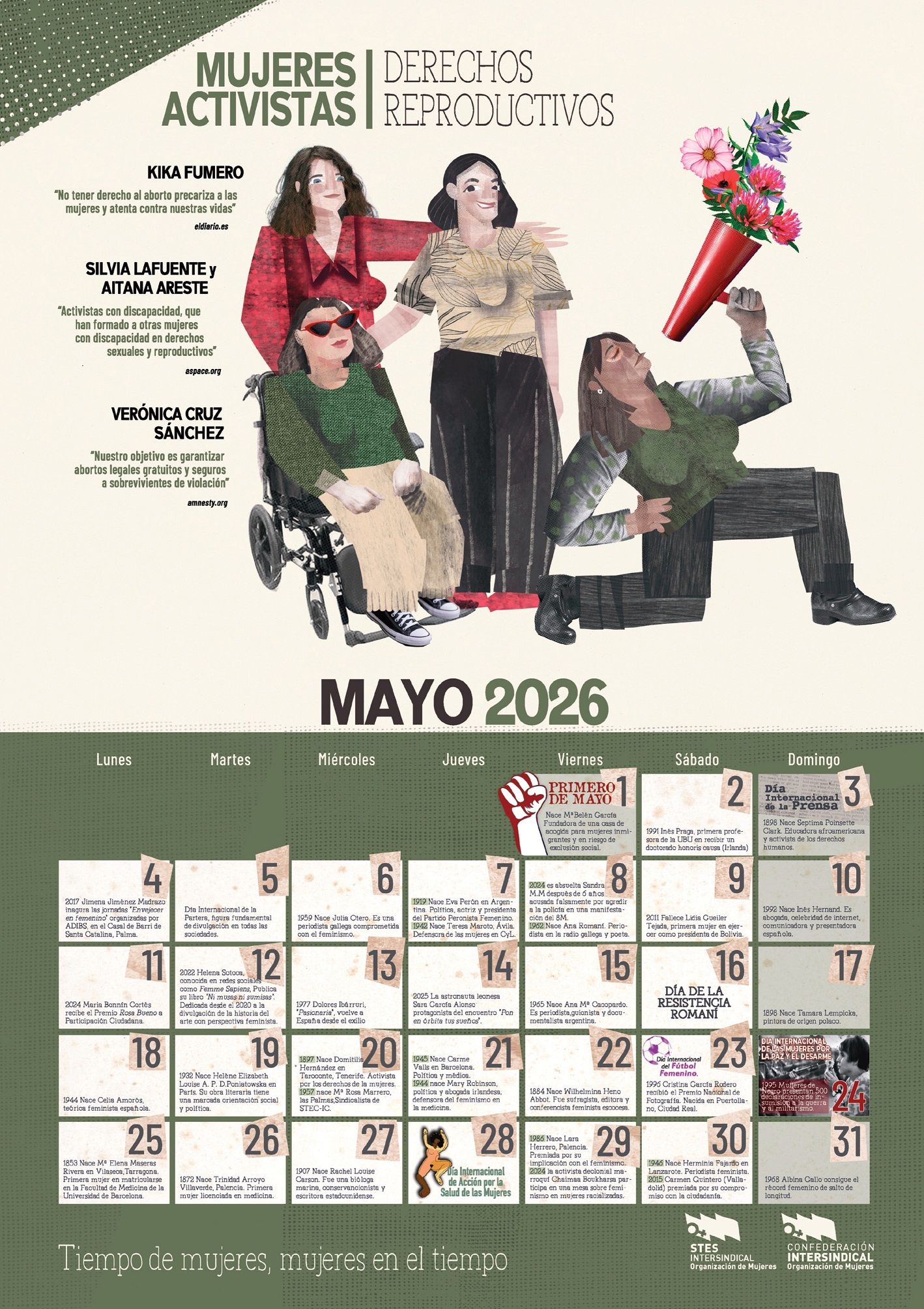 La Organización de Mujeres de STEs-intersindical y de la Confederación Intersindical presentan la edición para el año 2026 de su Calendario didáctico y coeducativo Tiempo de Mujeres, Mujeres en el Tiempo 2026, este año está dedicado a Mujeres activistas.