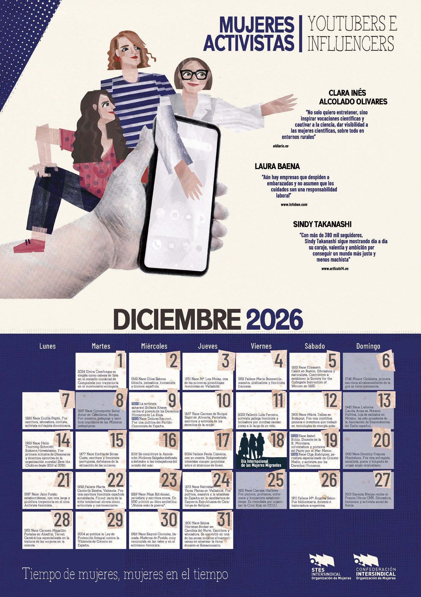 Calendario “Tiempo de Mujeres, Mujeres en el tiempo” 2026. MUJERES ACTIVISTAS.