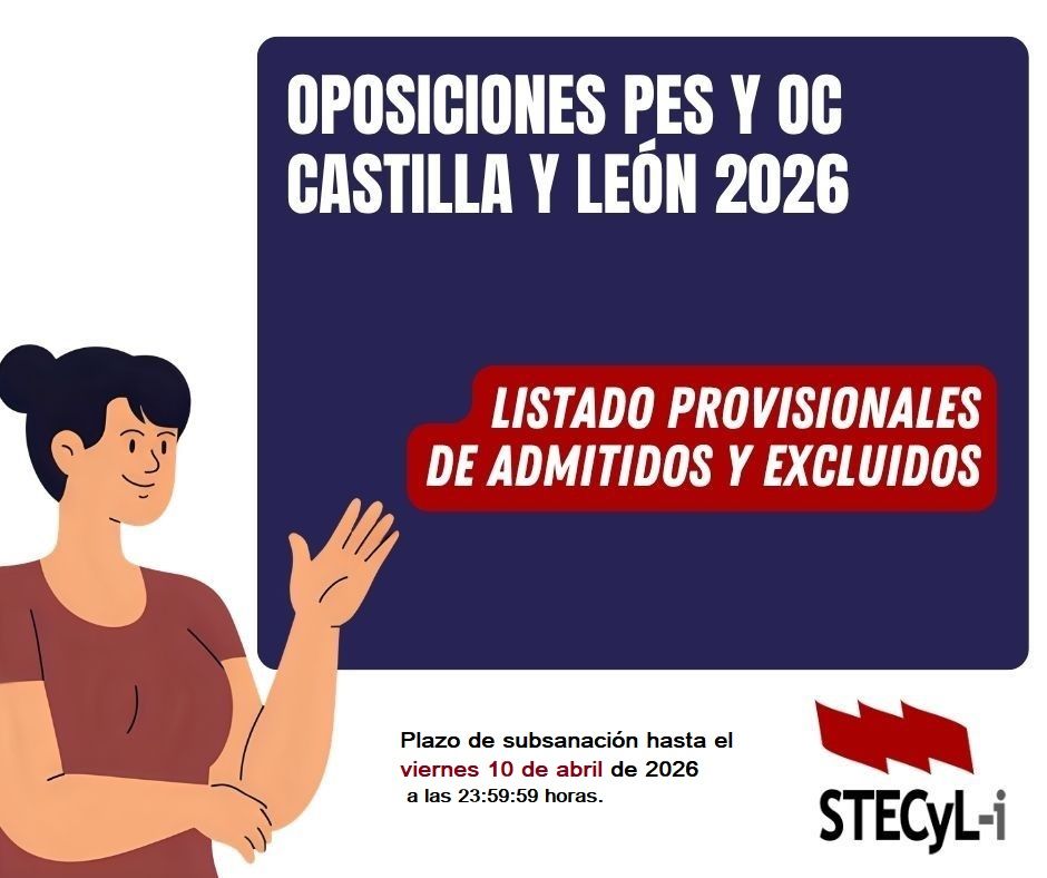Oposiciones 2026 Castilla y León. Secundaria y Otros cuerpos. LISTADO PROVISIONAL PERSONAS ADMITIDAS y/o EXCLUIDAS