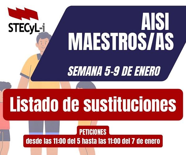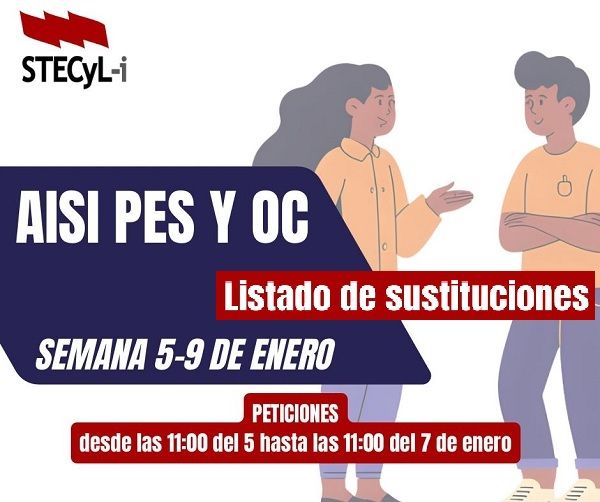 Interinidades curso 25-26. Sustituciones de Secundaria y Otros Cuerpos. Segundo AISI semanal 5 de enero 2026