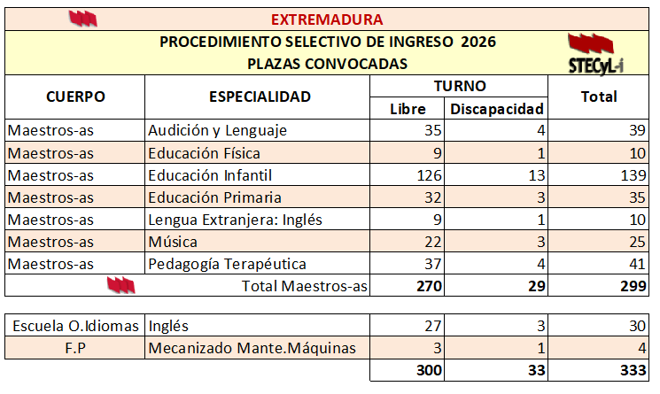Extremadura | Convocatoria Oposiciones 2025. Secundaria y Especialistas FP. 279 plazas