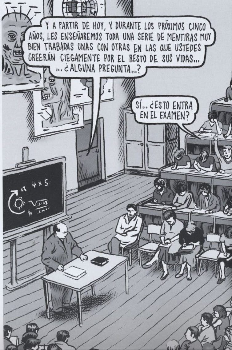 Era el primer día de clase. El profesor explicaba al alumnado que durante los próximos cinco años les enseñaría “toda una serie de mentiras muy bien trabadas unas con otras en las que ustedes creerán ciegamente el resto de sus vidas…”. Tras lo cual, mirando a los estudiantes, inquirió: “¿Alguna pregunta?”. Desde la tercera fila, uno de ellos levantó la mano para preguntar: “Sí… ¿Esto entra en el examen?”.