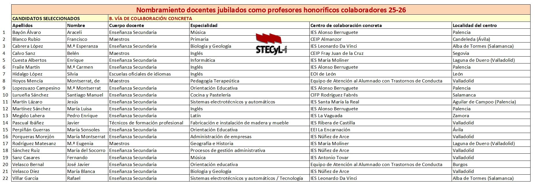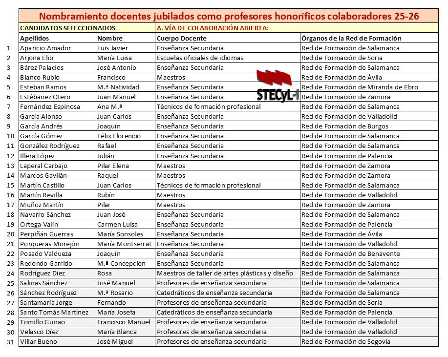Corrección de errores. Nombramiento docentes jubilados como profesorado honorifico colaborador para el curso 2025-2026