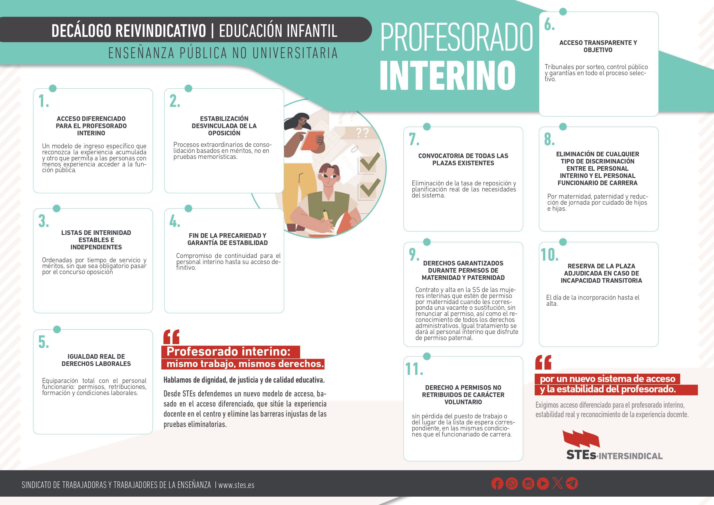 - Fin de la precariedad y garantía de estabilidad: Compromiso de continuidad para el personal interino hasta su acceso definitivo.